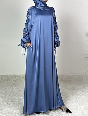 Damen Langes Kleid Maxikleid Satinkleid Schwingkleid Elegant Mode Klassisch Trompetenärmel Täglich Outdoor Ausgehen Normale Passform Einfach Langarm Rundhalsausschnitt Blau Karamell Gelb Mauva Sommer