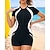 Damen Anti UV Shirt Badeanzug Badeanzüge Patchwork Boyleg UV Schutz Schnelltrocknend Elastisch Kurzarm Bademode Badeanzug Surfen Tauchen Strand Sommer