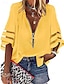 Damen Bluse Patchwork Reißverschluss Einfach Vintage Stilvoll Langarm V Ausschnitt Normale Oberteile Täglich Ferien Ausgehen Weiß Gelb Rosa Rote Marineblau Sommer Frühling
