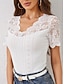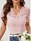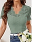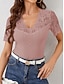 Damen Spitzenbluse Spitze Patchwork Knöpfe Einfarbig Stilvoll Lässig Kurzarm V Ausschnitt Normale Oberteile Täglich Schwarz Rosa Himmelblau Grün Aprikose Sommer