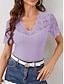 Damen Bluse Spitzentops Spitze Patchwork Einfach Stilvoll Klassisch Modern Kurzarm V Ausschnitt Normale Oberteile Täglich Ferien Ausgehen Schwarz Weiß Rosa Rote Purpur Sommer Frühling Herbst