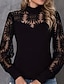 Damen Bluse Spitzentops Spitze Patchwork Einfach Vintage Stilvoll Langarm Hoher Ausschnitt Normale Oberteile Täglich Ferien Ausgehen Schwarz Sommer Herbst