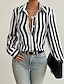 Damen Hemd Bluse Patchwork Knöpfe Gestreift Elegant Stilvoll Langarm Hemdkragen Normale Oberteile Täglich Ferien Ausgehen Schwarz Rote Braun Sommer Frühling
