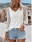 Damen Bluse Spitzentops Patchwork Lochmuster Einfach Elegant Urlaub Vintage Langarm V Ausschnitt Normale Oberteile Täglich Ferien Ausgehen Schwarz Weiß Sommer Frühling Herbst