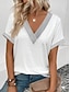 Damen T Shirt Sommeroberteile Patchwork Lochmuster Einfarbig Elegant Mode Klassisch Kurzarm V Ausschnitt Normale Oberteile Täglich Ausgehen Wochenende Blau Schwarz Weiß Rosa Purpur Sommer Frühling