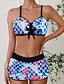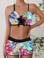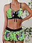 Damen Badeanzug Zweiteilig Slips Bademode Patchwork Rückenfrei Urlaub Strandbekleidung Blumen V Ausschnitt Ärmellos Badeanzüge