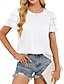 Damen T-Shirts mit Lochstickerei Spitze Patchwork Mode Lässig Kurzarm Puffärmel Rundhalsausschnitt Rundhals Normale Oberteile Täglich Ausgehen Weiß Sommer Frühling