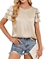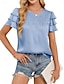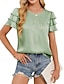 Damen Hemd Bluse Rüschenhemd Patchwork Einfarbig Stilvoll Klassisch Modern Kurzarm Rundhalsausschnitt Normale Oberteile Täglich Ferien Ausgehen Blau Schwarz Weiß Grün Aprikose Sommer Frühling