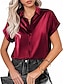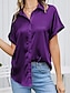 Damen Hemd Bluse Patchwork Knöpfe Einfach Elegant Urlaub Stilvoll Kurzarm Hemdkragen Normale Oberteile Täglich Ferien Ausgehen Schwarz Weiß Wein Leicht Braun Purpur Sommer Frühling