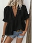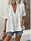 Damen Hemd Bluse Rüsche Patchwork Einfach Elegant Aktiv Urlaub Kurzarm V Ausschnitt Normale Oberteile Täglich Ferien Ausgehen Schwarz Weiß Braun Sommer Frühling