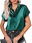 Damen Hemd Elegant Satin-Top Bluse Patchwork Knöpfe Einfach Stilvoll Langarm Hemdkragen Normale Oberteile Täglich Ferien Ausgehen Blau Gold Grün Grau Sommer Frühling