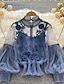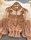 Damen Bluse Spitze Patchwork Einfach Vintage Stilvoll Langarm Hoher Ausschnitt Normale Oberteile Täglich Ausgehen Blau Schwarz Weiß Khaki Aprikose Sommer Frühling Herbst Winter