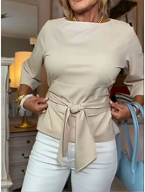 Damen Bluse Ausschnitt Stern Stilvoll Lässig Dreiviertelarm Rundhalsausschnitt Normale Oberteile Täglich Schwarz Weiß Rosa Orange Khaki Sommer