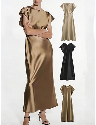 Damen Midikleid Satinkleid schwarzes kleid Elegant Vintage Mode Täglich Outdoor Büro Lässiger Schnitt Einfach Ärmellos V Ausschnitt Schwarz Kamel Aprikose Sommer Frühling