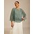Damen Bluse Chiffon Tops Pailletten Plissiert Patchwork Elegant Langarm Dreiviertelarm Glockenärmel Rundhalsausschnitt Normale Oberteile Täglich Hochzeitsgast Schiefergrün Sommer Frühling Herbst