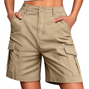 Damen Cargo-Shorts Shorts Sommershorts Freizeitshorts Urlaub Mode Alltagstauglich Kurz Mittlere Taille Einfarbig Einfach Patchwork Reißverschluss Tasche Komfort Schnelltrocknend Weich Mikroelastisch