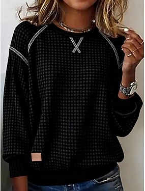 Damen Bluse Patchwork Einfarbig Stilvoll Lässig Langarm Rundhalsausschnitt Normale Oberteile Täglich Schwarz Frühling Herbst Winter
