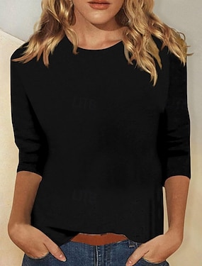 Damen T Shirt Einfarbig Klassisch Lässig Dreiviertelarm Rundhalsausschnitt Normale Oberteile Täglich Ausgehen Wochenende Schwarz Weiß Marineblau Orange Grau Winter