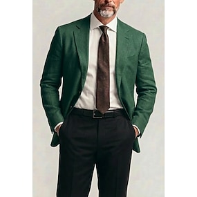 Herren Leichte Jacke Leinenblazer Geschäft Arbeit Formell Leicht Klassisch Sommer Frühling Baumwolle POLY Einfarbig Mehrere Taschen Einreihig Zwei-Knopf Blazer Marineblau Dunkelgrün Schokolade Beige