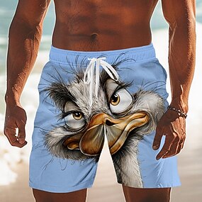 Herren Cartoon Lustig Strauße Badehosen Badeshorts Boardshorts Mittlere Taille Hawaiianisch Strandurlaub Seitentaschen Netzfutter Elastischer Kordelzug in der Taille Designer Bekleidung
