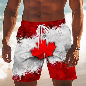 Herren Kanada Fußball Flagge / Nationalflagge Badehosen Badeanzüge Badeshorts Boardshorts Mittlere Taille Patriotisch Ferien Seitentaschen Netzfutter Elastischer Kordelzug in der Taille Designer
