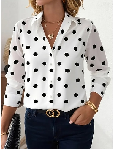 Damen Hemd Bluse Knöpfe Druck Karomuster Tupfen Lässig Langarm Hemdkragen Normale Oberteile Täglich Arbeit Blau Schwarz Weiß Rosa Khaki Frühling Herbst Winter