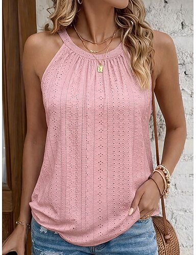 Damen Tank Top Lochmuster Einfach Mode Stilvoll Klassisch Ärmellos Neckholder Normale Oberteile Täglich Ausgehen Wochenende Schwarz Weiß Rosa Grün Sommer Frühling
