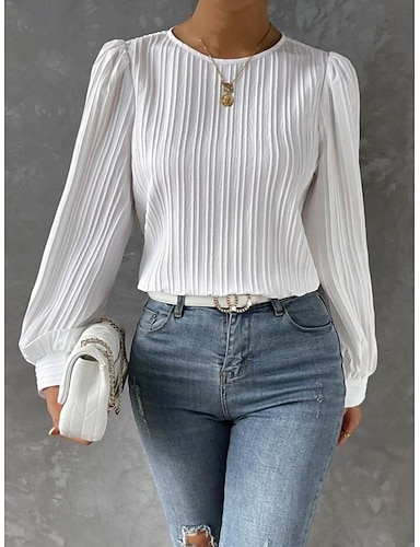 Damen Bluse Einfarbig Urlaub Stilvoll Lässig Langarm Rundhalsausschnitt Normale Oberteile Täglich Rosa Wein Himmelblau Purpur Gold Frühling Herbst