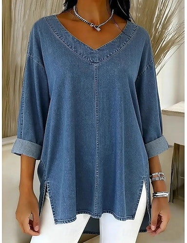 Damen Bluse Knöpfe Einfarbig Stilvoll Lässig Dreiviertelarm V Ausschnitt Normale Oberteile Täglich Blau Rosa Purpur Grün Khaki Frühling Herbst