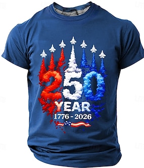 4. Juli 2026 250. Herren Einfarbig Amerikanische US-Flagge T Shirt Kurzarm T-Shirt 3D-Druck Rundhalsausschnitt Hemd Vintage-Retro Patriotisch Täglich Festival Blau Schwarz Burgunderrot Sommer Frühling