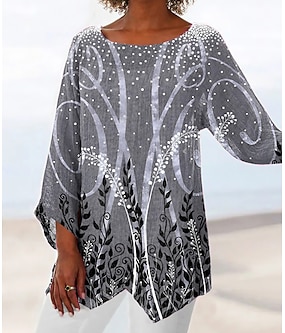 Damen T-Shirt V-Ausschnitt Ombre Floral Grafik Elegant 3/4 Länge Ärmel Regelmäßige Tops Alltag Ausgeh Knöpfe Grasgrün Schwarz und grau Blau Lila Grün Sommer Frühling Herbst