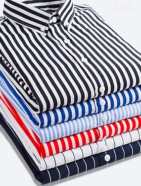 Herren Oberhemd Hemd Gestreiftes Hemd Kragenhemd Hochzeit Arbeit Schwarz Weiß Rote Marineblau Langarm Kragen Bekleidung