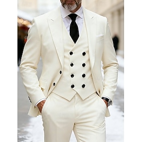Herren Blazer + Weste + Anzughose Anzüge Geschäft Cocktailparty Hochzeitsfeier Mode Lässig Frühling Herbst Polyester Einfach Tasche Knöpfe Bequem Einreihig Blazer Rote Grün Beige