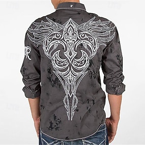Herren Grafikdrucke Totem Hemd Westernhemd Cowboy-Shirt Langarm Mode Designer Lässig Outdoor Täglich Herbst Winter Umlegekragen Druck Button-Down Grau