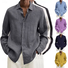 Herrenhemd aus Baumwolle und Leinen, schwarz, rosa, marineblau, langärmelig, einfarbig, Umlegekragen, Urlaubskleidung, Polyester, modisch, lässig