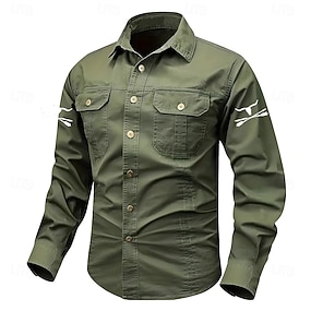 Herren Kuhmuster Arbeitshemd Westernhemd Cargohemd Langarm Lässig Taktisch Sport im Freien Arbeitskleidung Frühling Herbst Umlegekragen Zwei Fronttaschen Hemden mit Knopfleiste Schwarz Armeegrün