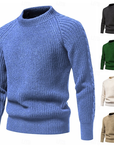 Herren Pullover Gerippt Stricken Normale Oberteile Strick Schmaler Schnitt Glatt Rundhalsausschnitt Moderne zeitgenössische Arbeit Freizeitskleidung Bekleidung Winter Schwarz Blau M L XL