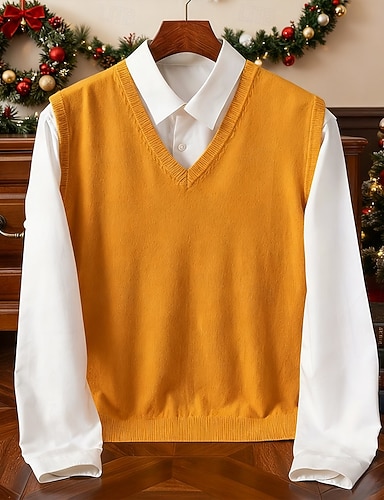 Herren Pullunder Kleid Pullover Pullover Weste Strickpullover Gerippt Zopfmuster Stricken Normale Oberteile Gestrickt Einfach V Ausschnitt Mode Lässig Urlaub Alltagskleidung Bekleidung Herbst Winter