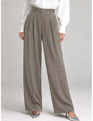 Damen Weites Bein Anzughose Hosen Hose Mode Streetwear Volle Länge Hohe Taille Einfach Atmungsaktivität Bequem Mikroelastisch Geschäft Alltagskleidung Dunkelbraun Schwarz Hellgrün Rosa Sommer Frühling