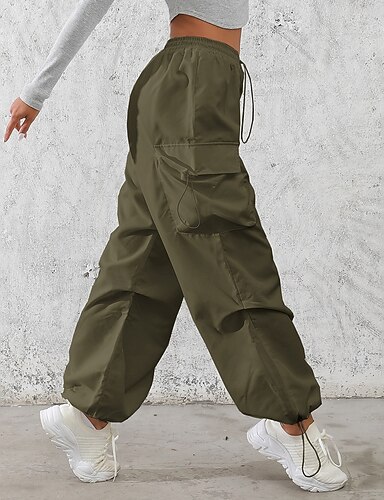 Damen Cargo-Hosen Hose Freizeithose Urlaub Mode Alltagstauglich Volle Länge Hohe Taille Einfarbig Einfach Kordelzug Tasche Weites Bein Komfort Schnelltrocknend Weich Unelastisch Outdoor Streetwear