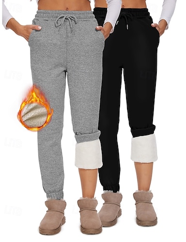 Damen Fleecehose Jogginghose Stoffhosen Streetwear Lässig Volle Länge Natürliche Taille Einfach Tasche Elastisches Kordelzugdesign Bequem Straße Alltagskleidung Wochenende Schwarz Hellgrau Winter