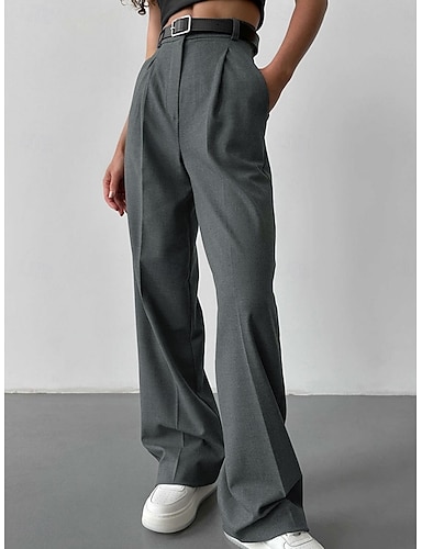 Damen Weite Hosenbeine Anzughose Chinos Urlaub Streetwear Lässig Volle Länge Mittlere Taillenlinie Einfarbig Tasche Komfort Mikroelastisch Täglich Outdoor Arbeit Schwarz Grün Dunkel Blau Khaki Sommer