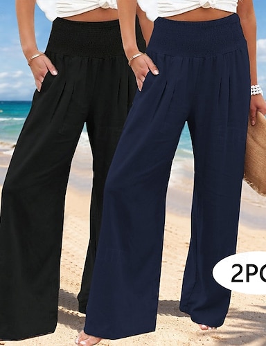 Damen Weites Bein Hose Sommerhose 100% Baumwolle Urlaub Mode Basic Volle Länge Hohe Taille Einfach Baggy Bequem Atmungsaktiv Mikroelastisch Täglich Urlaub Straße Schwarz + Khaki Dunkelblau + Schwarz