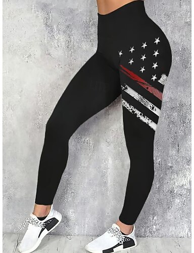 Damen Hosen Hose Leggings Urlaub Streetwear Basic Volle Länge Hohe TaillePantsAmerikanischer Unabhängigkeitstag Grafik Amerikanische Flagge Elastischer Bund Druck Atmungsaktivität Bequem Hohe