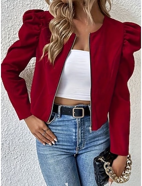 Damen Freizeitjacke Bequem Atmungsaktiv Reißverschluss Lässig Einfach Urlaub Straße Lässig Alltagskleidung Reisverschluss Kurz Umlegekragen Normale Passform Langarm Oberbekleidung Silber Schwarz Wein