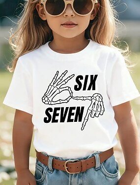 Unisex Mädchen 3D Grafik Lustiger Slang 67 T-Shirt Kurzarm 3D-Druck Sommer Frühling Sport Mode Streetwear Kinder 4-12 Jahre Rundhalsausschnitt Outdoor Lässig Täglich Normale Passform