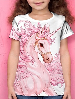 Mädchen 3D Graphic Einhorn T-Shirt Kurzarm Sommer Frühling Modisch Basic kinderkleidung 4-12 Jahre Rundhalsausschnitt Outdoor Casual Täglich Regular Fit