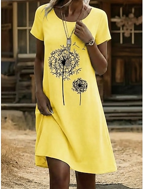 Damen Minikleid Freizeitkleid T-Shirt-Kleid Blumenkleid Mode Modern Täglich Outdoor Urlaub Normale Passform Grafik Geometrisch Kurzarm Rundhalsausschnitt Weiß Gelb Marineblau Grau Sommer Frühling
