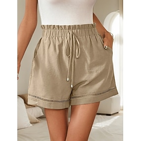 Damen Chinos Shorts Sommershorts Urlaub Mode Streetwear Kurz Hohe Taille Einfach Kordelzug Spitze Elastischer Bund Komfort Atmungsaktivität Bequem Unelastisch Mikroelastisch Täglich Urlaub Formell