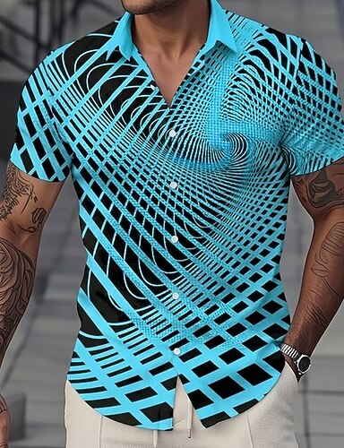 Herren Geometrisch Farbverlauf Linie Hemd Knopfhemd Kurzarm Modisch lässig Täglich Outdoor Urlaub Sommer Frühling Umlegekragen 3D-Druck Leinenähnliches Hemd Blau Purpur Grün Grau